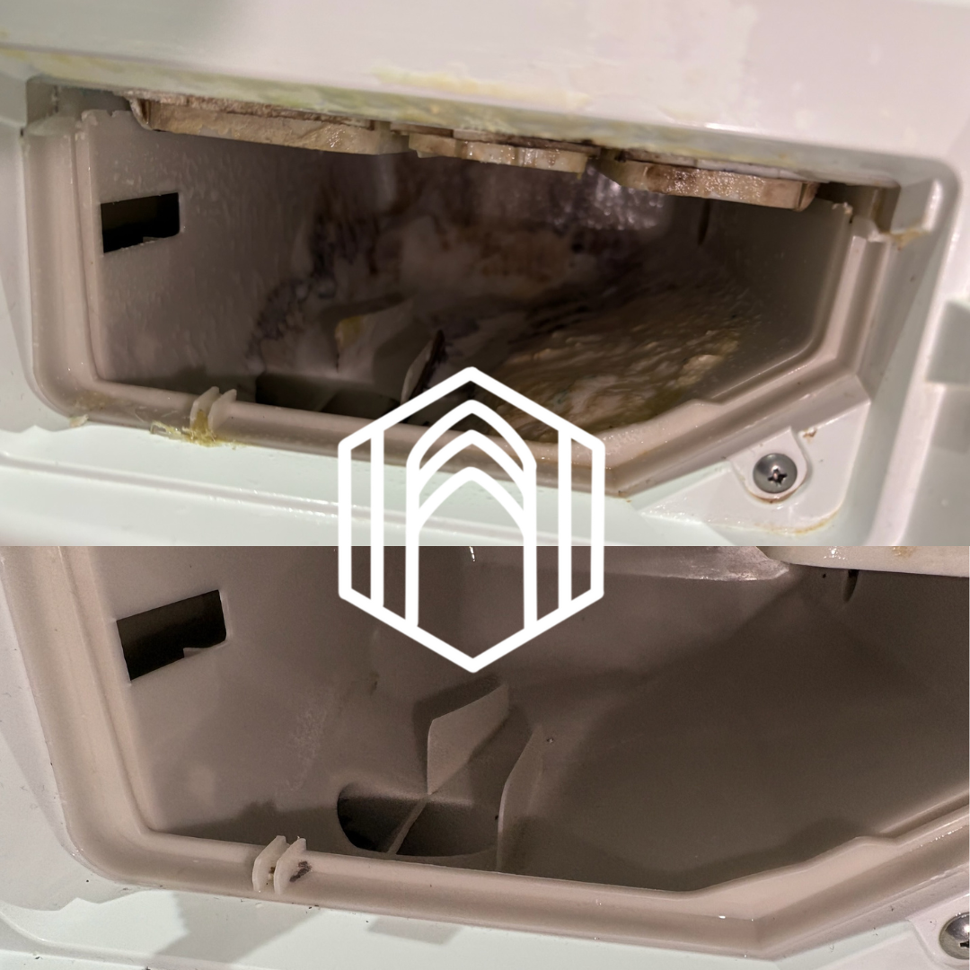 Clean all sides of washing soap dispenser, machine, and filters